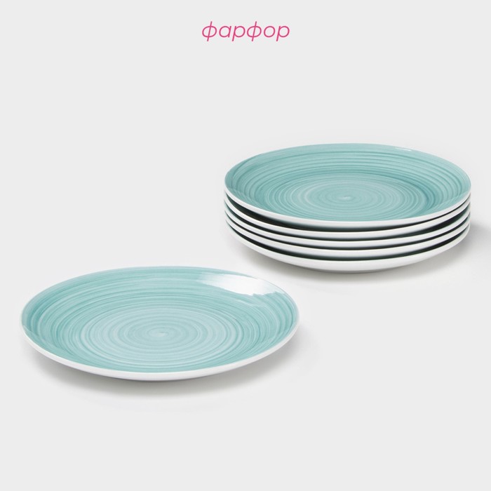 Тарелки Доляна «Палитра», d=19 см, набор6 шт., фарфор, бирюзовые — Характеристики