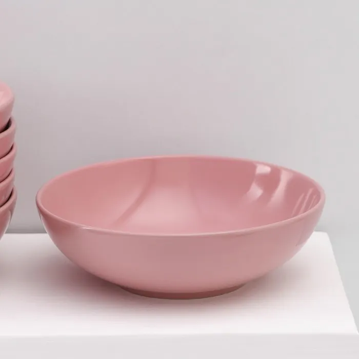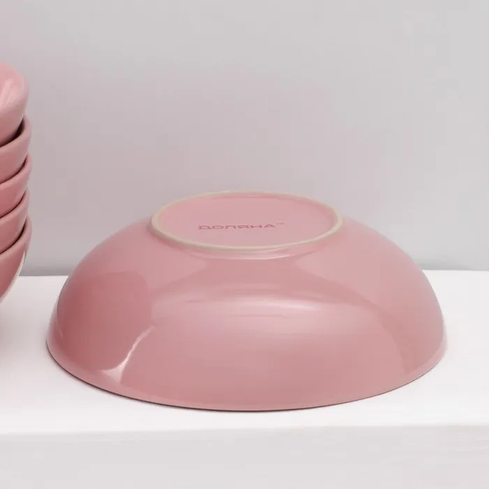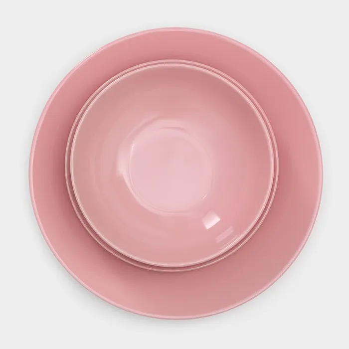 Тарелки Доляна «Пастель», 18 предметов: 6 тарелок d=19 см, 6 тарелок d=27 см, 6 мисок d=19 см, керамика, розовые
