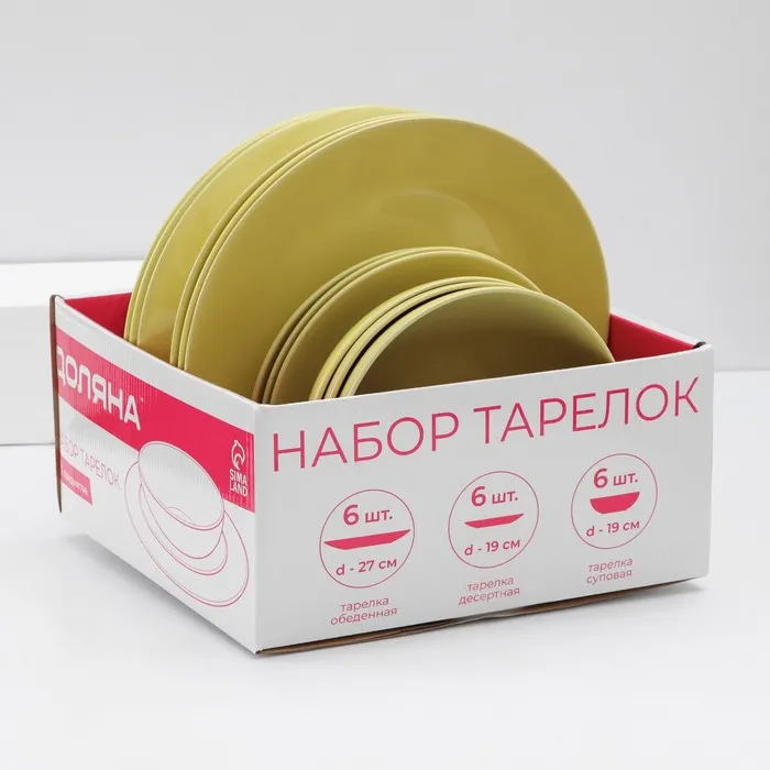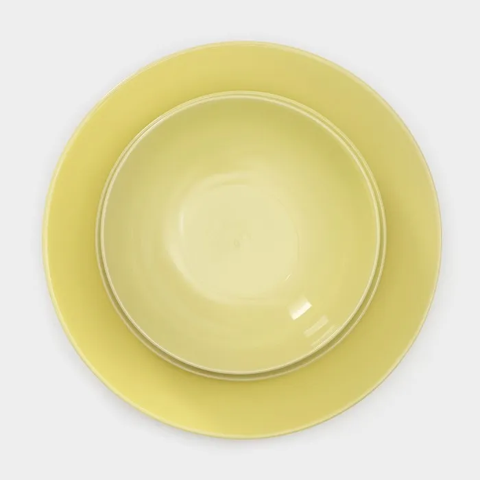 Тарелки Доляна «Пастель»,18 предметов: 6 тарелок d=19 см, 6 тарелок d=27 см, 6 мисок d=19 см, керамика, жёлтые — Характеристики