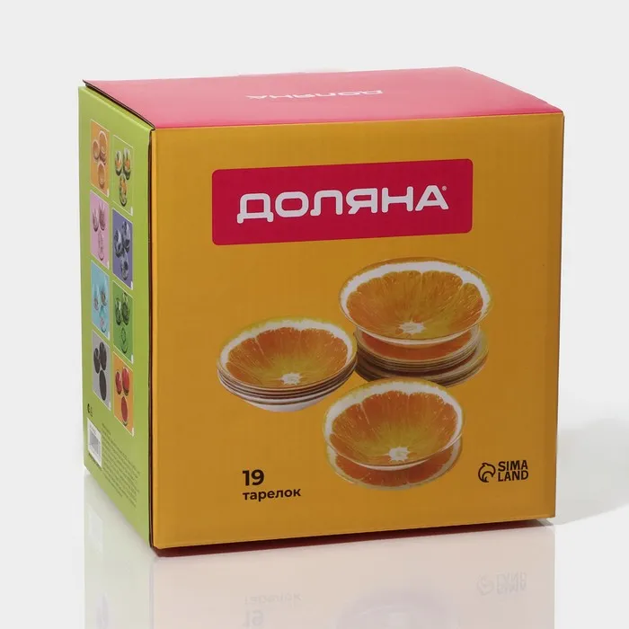 Тарелки Доляна «Сладкий арбуз», 19 предметов: 6 десертных тарелок, 6 обеденных тарелок, 6 мисок, салатник, стекло, красный — Характеристики