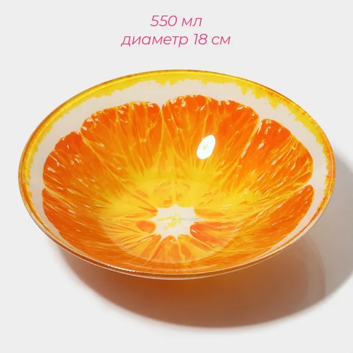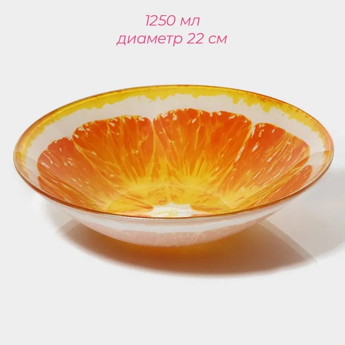 Тарелки Доляна «Сочный апельсин», 19 предметов: 6 десертных тарелок, 6 обеденных тарелок, 6 мисок, салатник, стекло, оранжевый — Характеристики