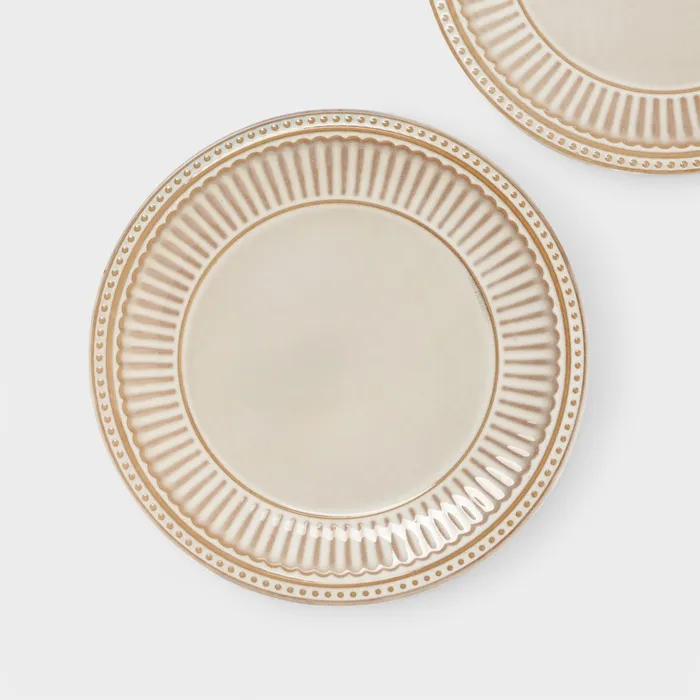 - Стильный дизайн: бежевый цвет и оригинальные узоры делают тарелки не только функциональными, но и стильными элементами декора.