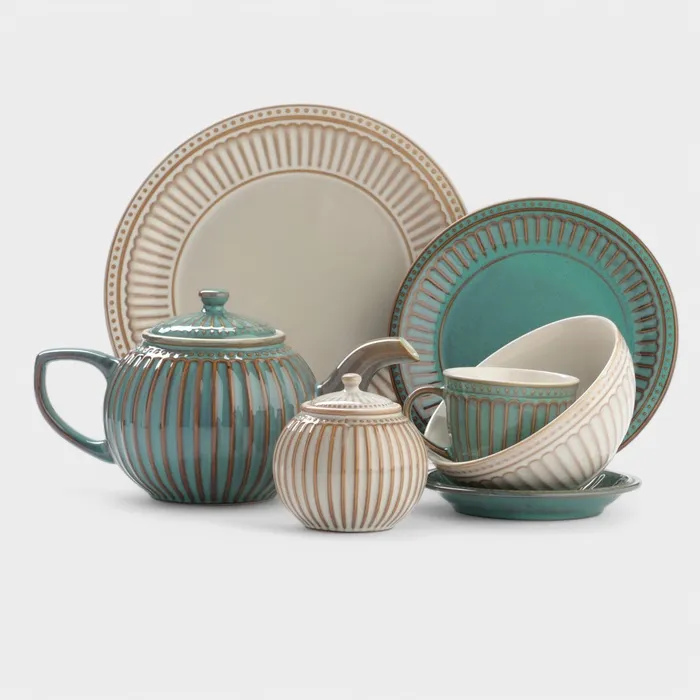 Изготовленные из высококачественной керамики, они обладают прочной конструкцией и рельефной текстурой, что делает их не только красивыми, но и практичными. Бежевый цвет и стильный узор придают им уникальный шарм, который легко вписывается в любой интерьер, будь то современная кухня или классическое застолье.