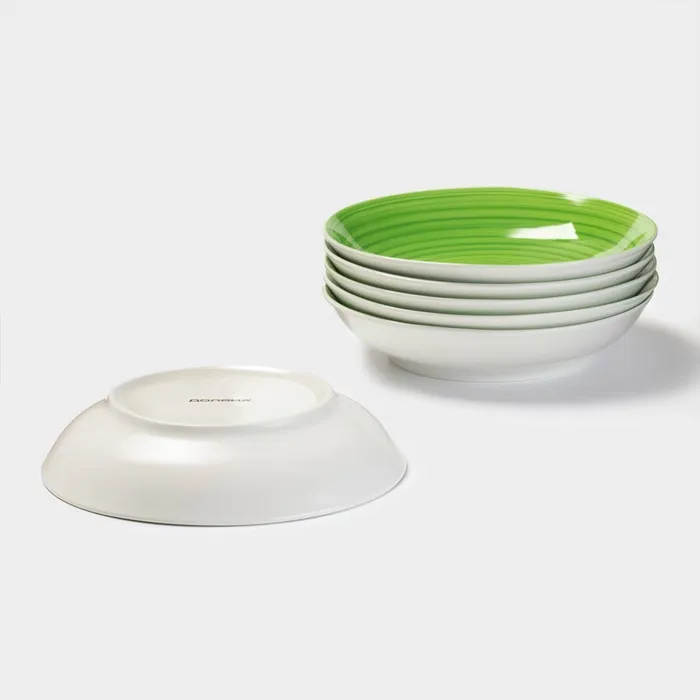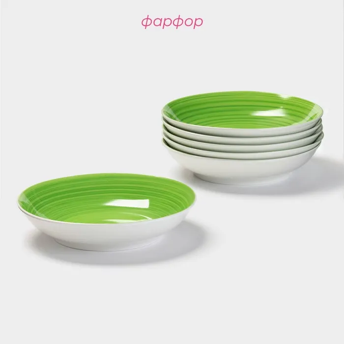 Тарелки глубокие Доляна «Палитра», 20.2×4.2 см, набор 6 шт., фарфор, зелёные — Характеристики