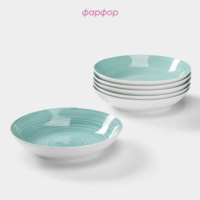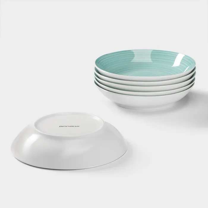 Тарелки глубокие Доляна «Палитра», 700 мл, d=20.4 см, набор 6 шт., фарфор, бирюзовые — Характеристики