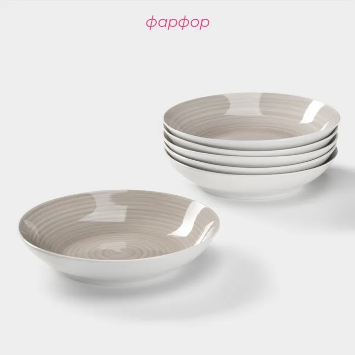 Тарелки глубокие Доляна «Палитра», 700 мл, набор 6 шт., d=20.2 см, серые — Характеристики