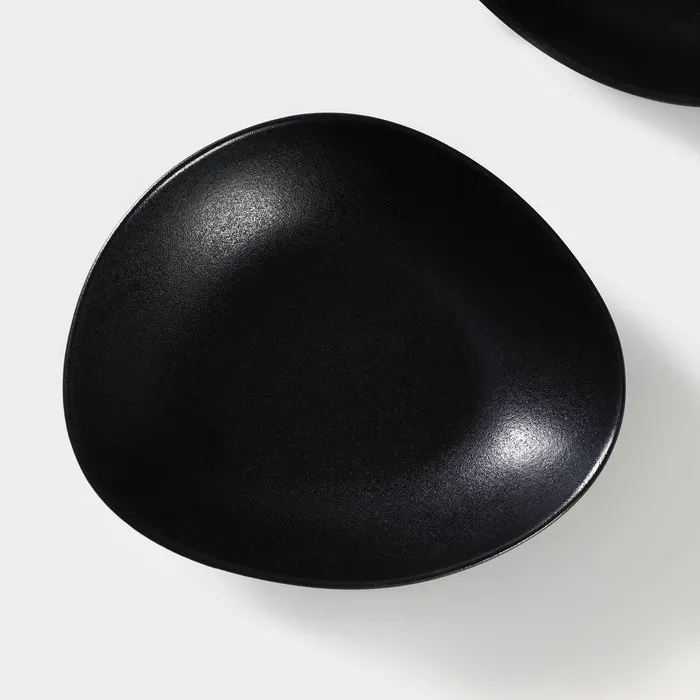 Посуда выполнена из высококачественного фарфора, матовая поверхность которого имитирует естественную фактуру камня благородного чёрного цвета. Каменная поверхность добавляет прочности изделиям, она не царапается, цвет со временем не тускнеет. Предметы из серии ощутимо тяжелее обычных фарфоровых аналогов.