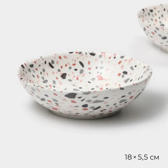 Тарелки глубокие Magistro Terazzo, 700 мл, 18×5.5 см, набор 2 шт., фарфор, белые — Характеристики