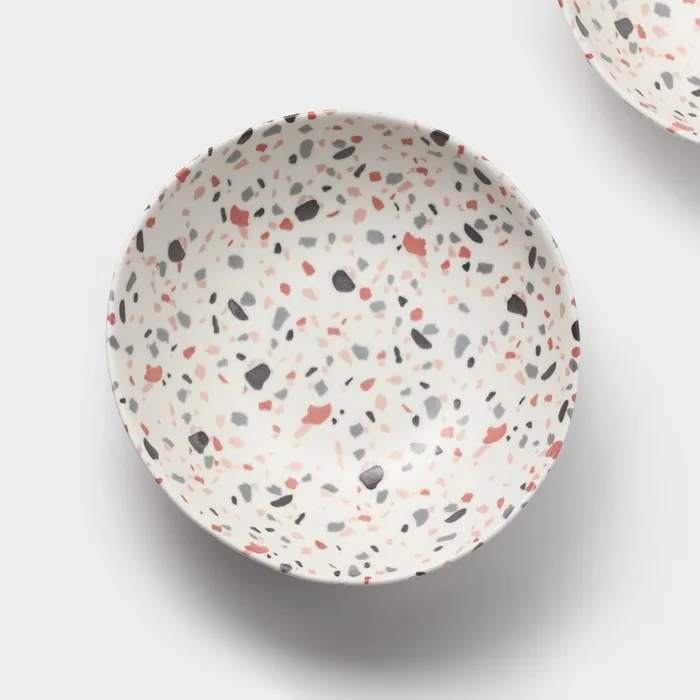 Изделия устойчивы к механическим повреждениям, имеют цветное покрытие, которое долго сохраняет яркость. Вся посуда подходит для использования в посудомоечной машине. Выполнены из высококачественного фарфора в серии посуды Terazzo.