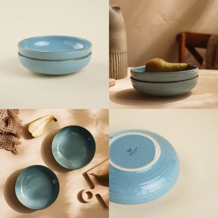 Тарелки глубокие SL Home «Аззура», 750 мл, набор 2 шт., фарфор, бирюзовые — Характеристики