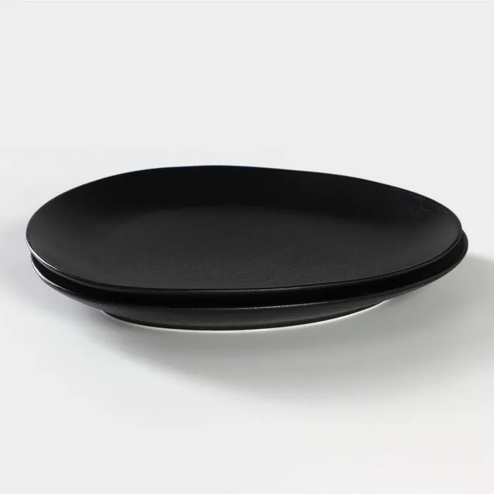 Посуда выполнена из высококачественного фарфора, матовая поверхность которого имитирует естественную фактуру камня благородного чёрного цвета. Каменная поверхность добавляет прочности изделиям, она не царапается, цвет со временем не тускнеет. Предметы из серии ощутимо тяжелее обычных фарфоровых аналогов.