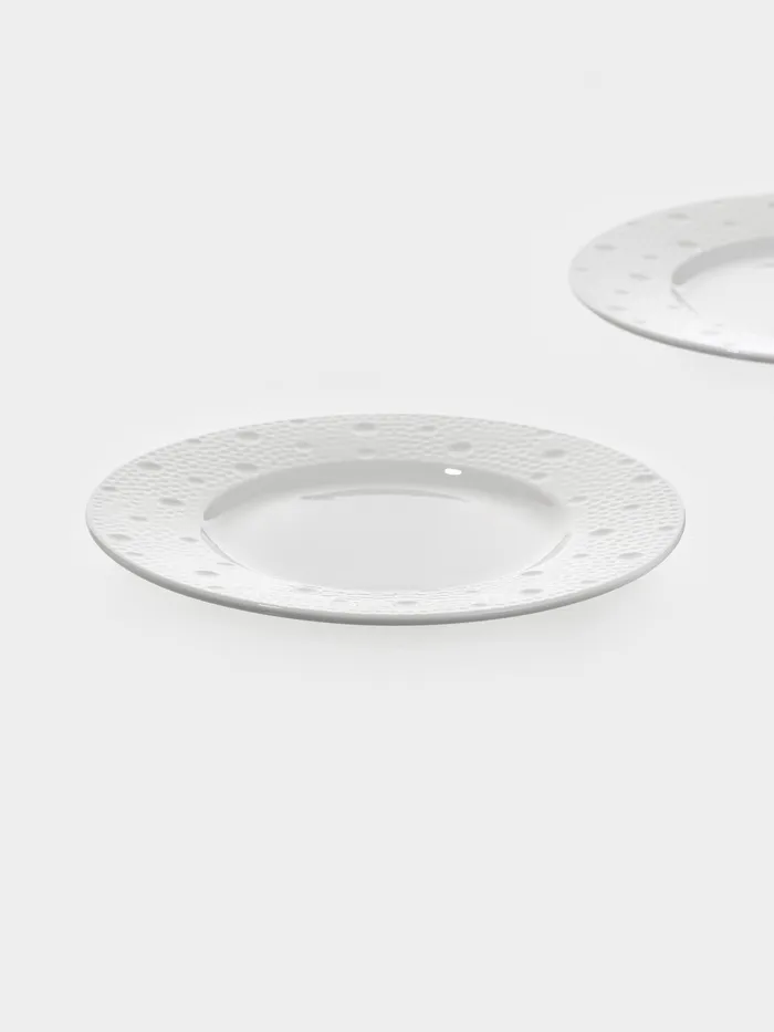 Тарелки "Fray"идеально подходят для подачи закусок, десертов, небольших порций салатов или в качестве подстановочных тарелок. Рельефный барельеф придает им особый шарм и делает их центром внимания на столе. Фарфор высокого качества обеспечивает долговечность и удобство в использовании: тарелки можно использовать в микроволновой печи и мыть в посудомоечной машине.