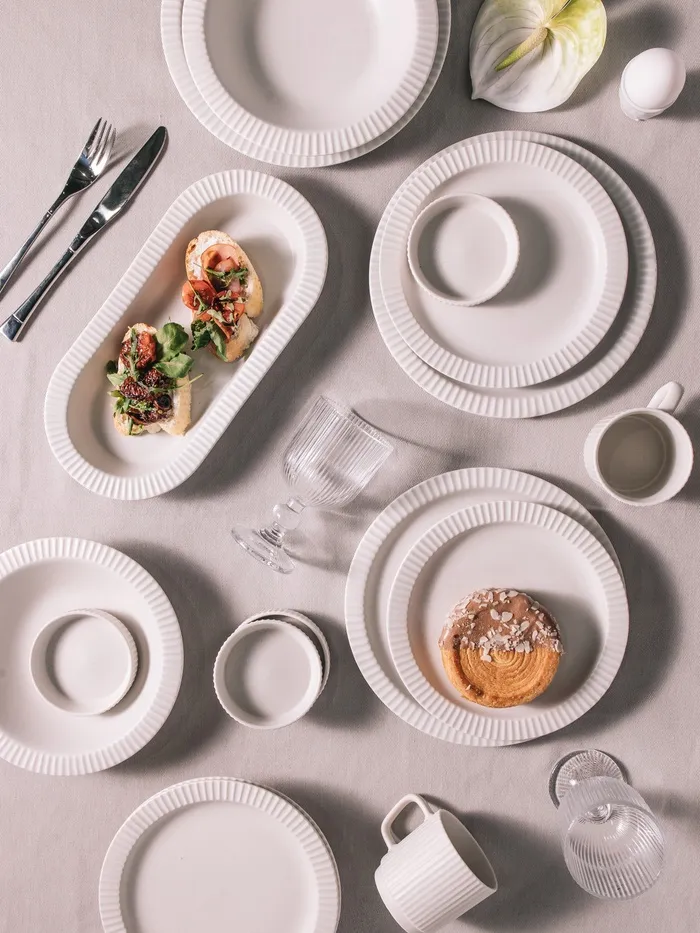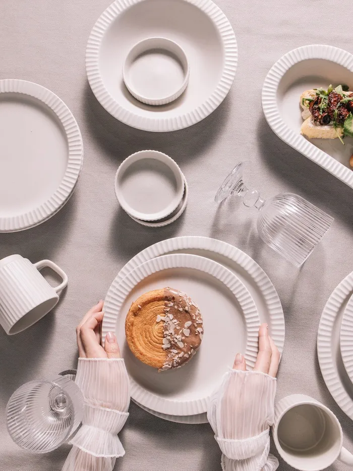 - Современный дизайн: однотонный стиль и текстура с рельефом придают изысканности и утонченности каждому приему пищи.