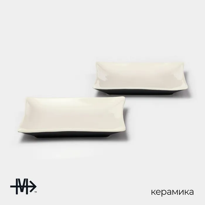 Тарелки Magistro Matt black, 15×2 см, набор 2 шт., квадратные, фарфор, белые, чёрные — Характеристики