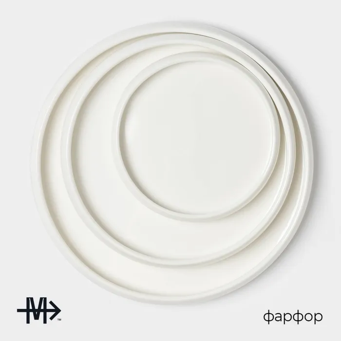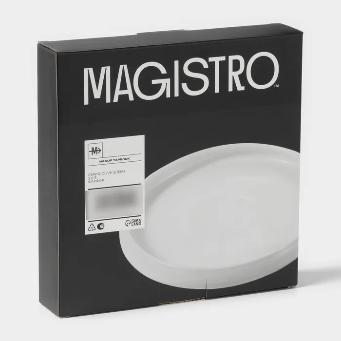 Тарелки Magistro OliveQueen, 3 шт.: d=14/19/23 см, фарфор, белые — Характеристики