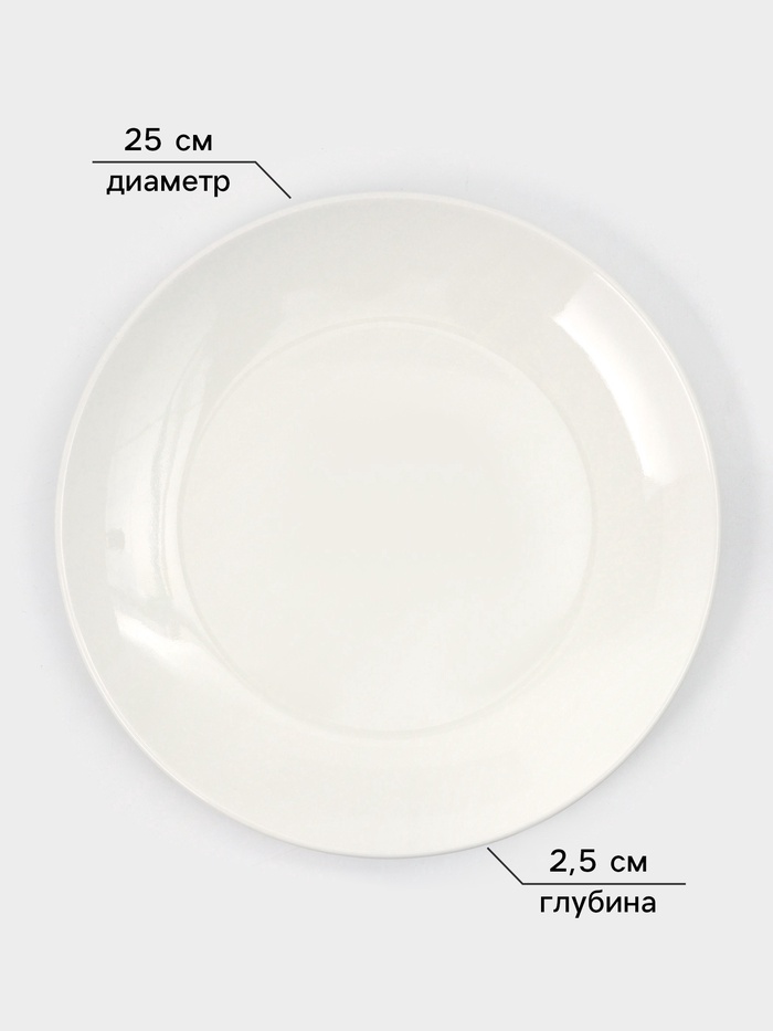 Тарелки обеденные Доляна White Label, набор 4 шт., d=25 см, фарфор, белые — Характеристики