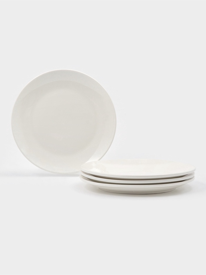 Обеденные тарелки «White Label» — чистый фарфор для повседневного ритма и особых моментов за столом. Набор из четырёх белых тарелок диаметром 25 см станет незаметной, но важной опорой в сервировке: без рисунков, без отвлекающих деталей — только форма, функция и спокойная эстетика. Они подойдут для горячих блюд, микроволновки и посудомоечной машины, не требуя особого ухода и не теряя вида со временем.