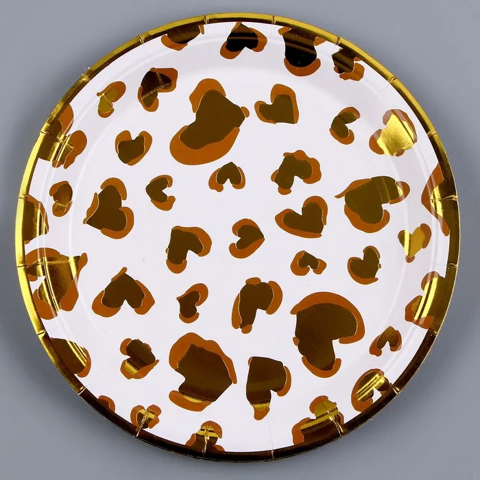 Тарелка бумажная одноразовая «Золотые сердца», в наборе 6 шт.