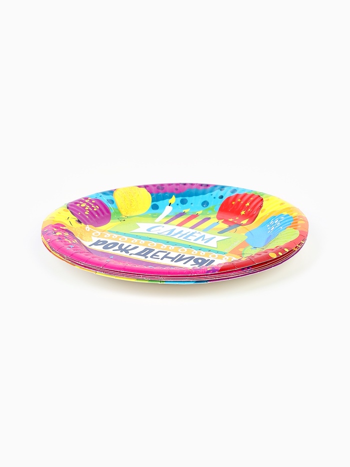 Тарелки одноразовые бумажные «С Днем Рождения!», 18 см, 6 шт