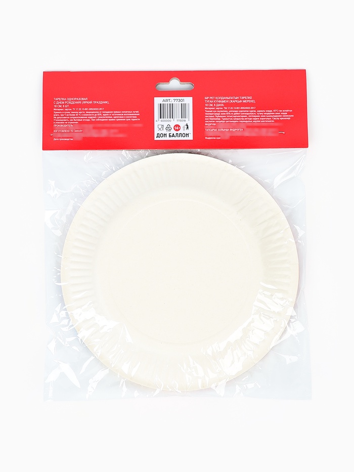 Тарелки одноразовые бумажные «С Днем Рождения!», 18 см, 6 шт — Характеристики