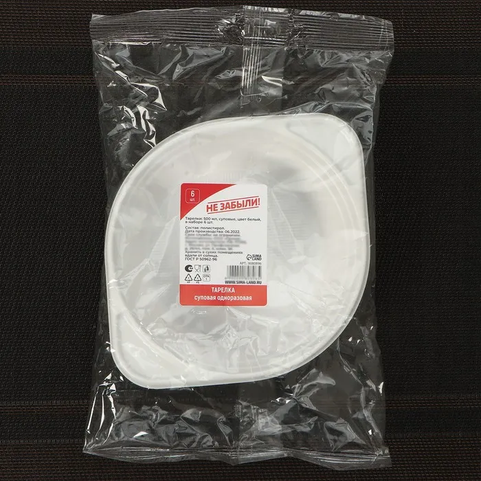 Тарелки одноразовые суповые Не ЗАБЫЛИ!, набор 6 шт., 500 мл, белые — Характеристики