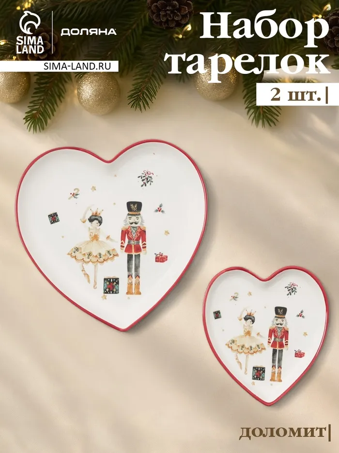 Тарелки сервировочные новогодние Доляна «Сказочный бал.Щелкунчик», набор 2 шт., 22.5×2.6 см, 16.5×2 см, доломит, белые — Характеристики