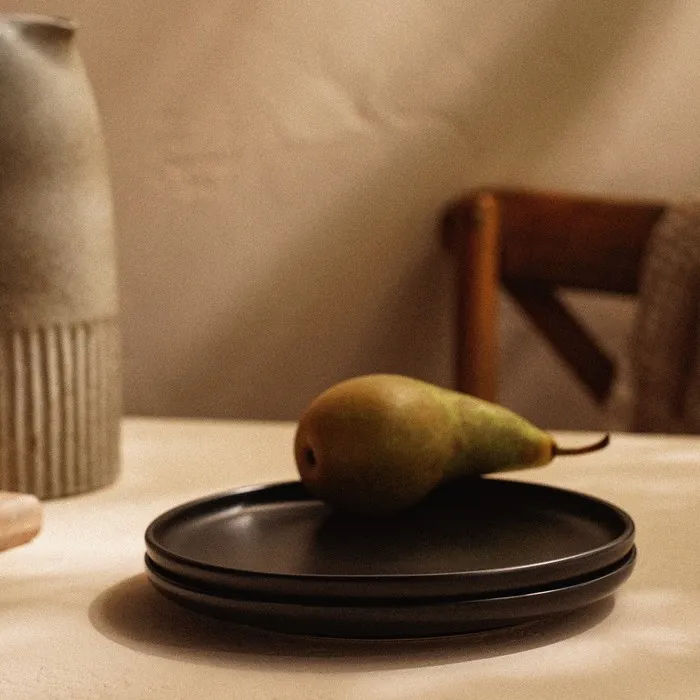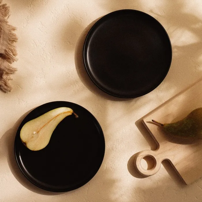 Элегантные и утончённые, эти чёрные фарфоровые тарелки добавят стиль и глубину вашему столу. Диаметр в 18 см делает их идеальными для подачи разнообразных блюд, будь то изысканные закуски или десерты. Этот набор из двух тарелок выполнен из высококачественного фарфора, что гарантирует их прочность и долговечность. Гладкая матовая поверхность не только приятна на ощупь, но и подчеркивает современный дизайн, имитируя текстуру натурального камня.