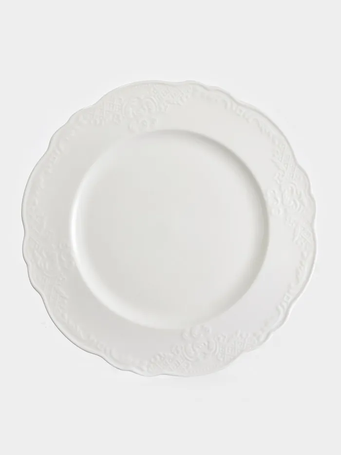 Этот набор плоских тарелок привнесет нотку элегантности в вашу повседневную жизнь. Белые фарфоровые тарелки с рельефным краем – это сочетание классики и современности. Набор тарелок «Venecia» станет достойным украшением вашего стола.