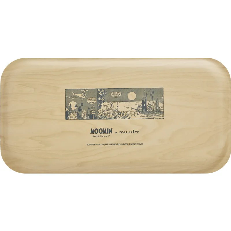 Muurla Auringonlasku - поднос, который поможет вам стильно подать еду и напитки. Этот поднос, изготовленный вручную в Финляндии, выполнен из покрытого шпона березы. Прекрасная иллюстрация взята из комикса Moomin's Desert Island. Размер 43 x 22 см. Подходит для мытья в посудомоечной машине.