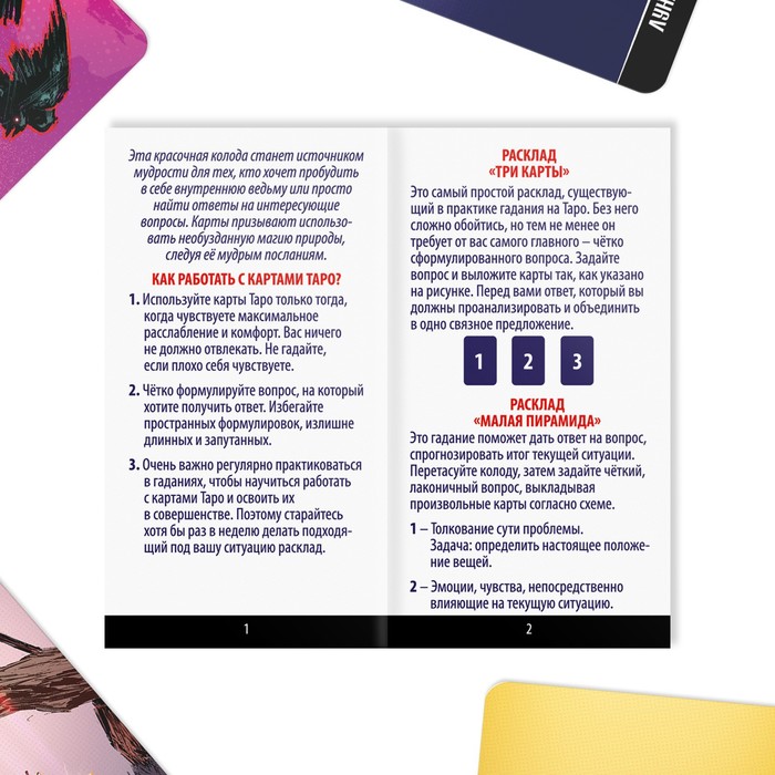 • Используйте инструкцию, чтобы сделать подходящий расклад и узнать толкование каждой карты.