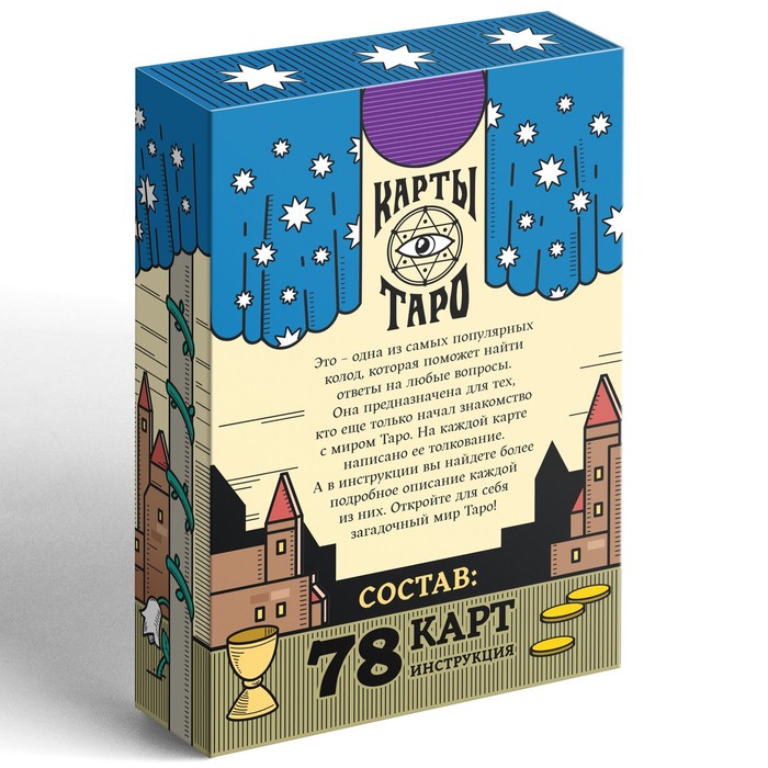 Вы только начинаете знакомство с загадочным миром Таро? Тогда эта колода подойдёт вам. В инструкции вы найдёте подробное описание каждой карты, а также её значение в прямом и перевёрнутом положении. Кроме этого, в инструкции находится подробное описание, значение и особенности основных раскладов: «Три карты», «Подкова», «Обретение любви». К каждому раскладу прилагается изображение.