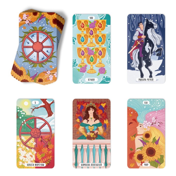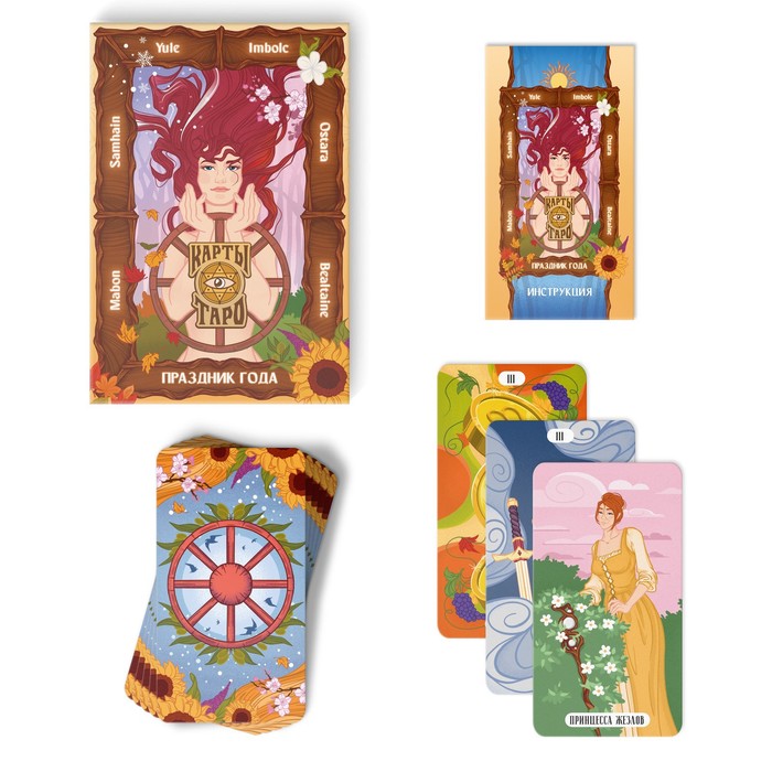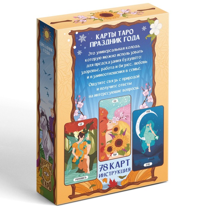 «Праздник года» – универсальные карты Таро. С их помощью каждый погрузиться в мир тайных знаний и получит заветные ответы на темы: здоровья, бизнеса, любви и взаимоотношений. Вас ждет колода из 78 карт с яркими иллюстрациями, наполненными фантастической символикой природного царства.