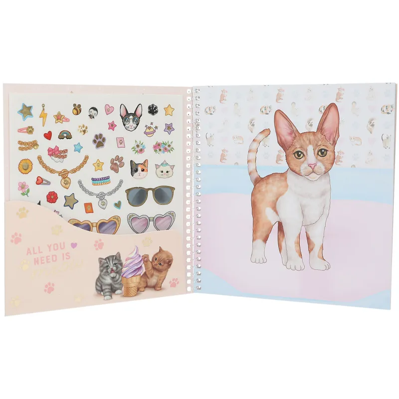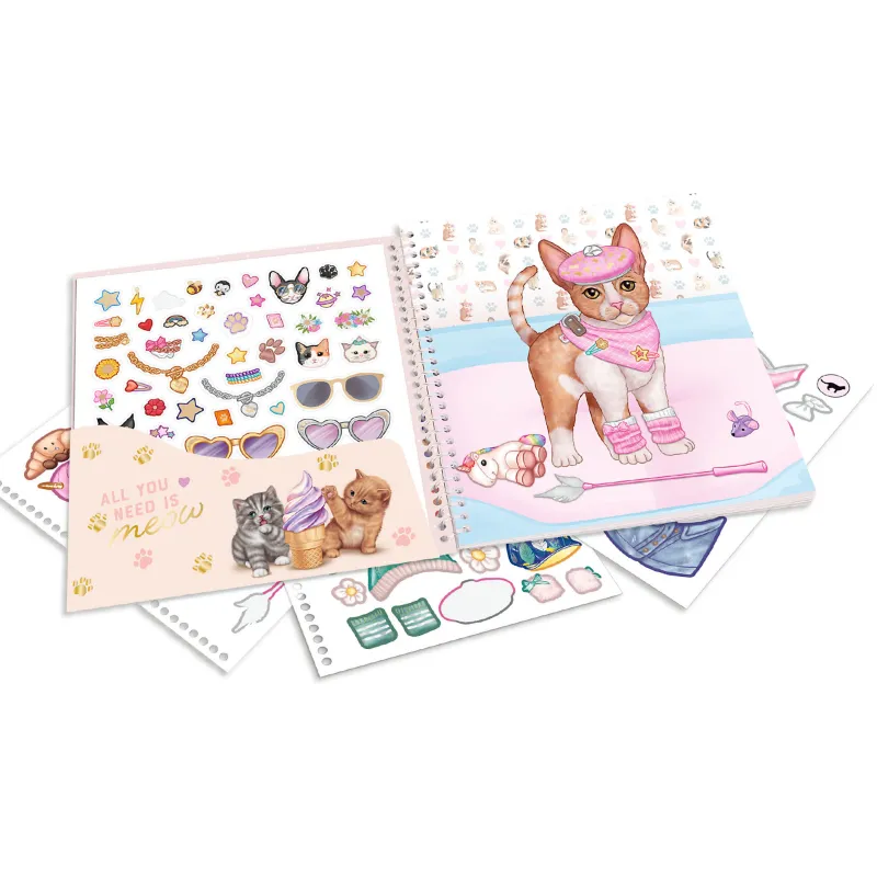 Альбом с наклейками TOPModel Dress Me Up Kitty предлагает часы творческого развлечения. Нарядите милых котиков с помощью различных аксессуаров и наклеек, входящих в комплект. Спиральный альбом содержит 24 страницы и включает 11 листов с наклейками. Отличное занятие для долгих поездок на автомобиле, поезде или самолете!