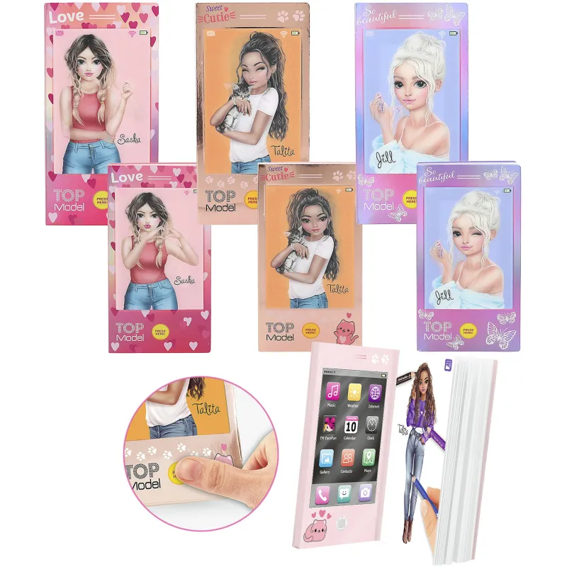 Эта впечатляющая карманная раскраска TOPModel с 3D-эффектом позволяет создавать модные и креативные образы. Книга имеет великолепную 3D-обложку, и при нажатии на кнопку на обложке начинает играть музыка. Вы не найдете более удивительной карманной раскраски! Доступно в трех различных моделях.