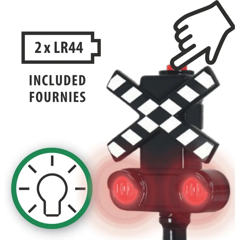 Светофор Brio 33862 предупреждает, когда поезд приближается! Нажмите на кнопку, и красный свет начнет мигать, обеспечивая безопасный проезд поезда. Устройство работает от 2 батареек LR44, которые входят в комплект. Рекомендуемый возраст: от 3 лет.