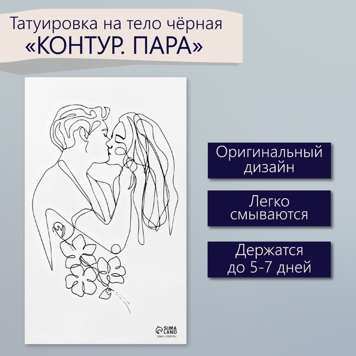 Переводная тату на тело чёрная «Контур. Пара», 6×10.5 см
