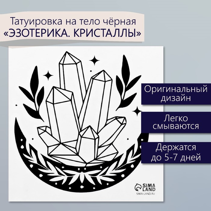Переводная тату на тело чёрная «Эзотерика. Кристаллы», 6×6 см