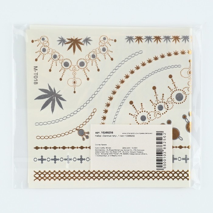 Татуировки переводные «Золотые», 1 лист