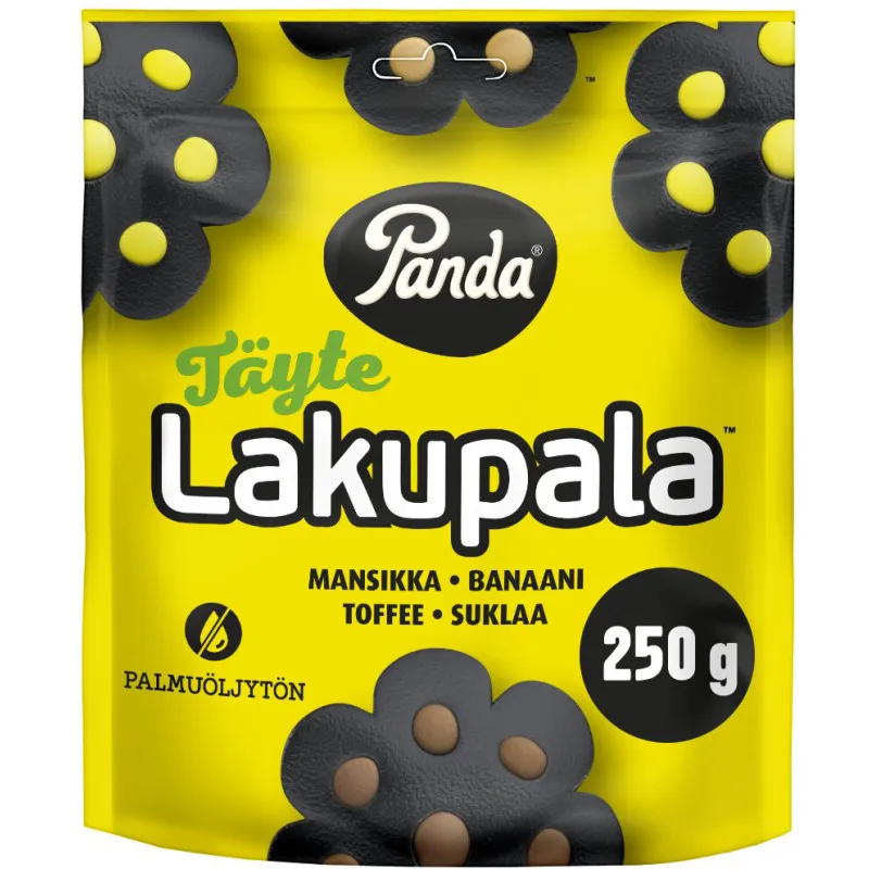 Веселые лакрицы Täytelakupala сочетают в себе традиционный вкус лакрицы с начинками из шоколада, банана, тоффи и клубники. Каждый найдет свой любимый вкус среди этого фейерверка вкусов! Удобная повторно закрывающаяся упаковка. Размер упаковки 250 г. Мы постоянно обновляем информацию о продуктах, но рекомендуем всегда проверять данные на упаковке.