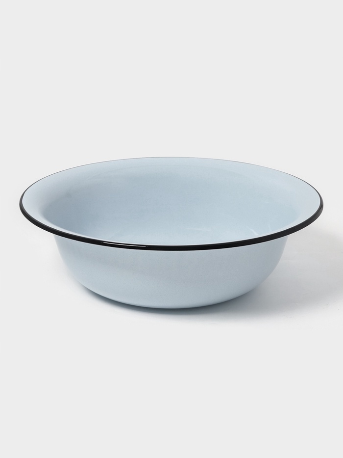 Гладкая эмалевая поверхность, круглая форма и устойчивое дно делают его удобным для стирки, замачивания, переборки урожая или мытья посуды на природе.