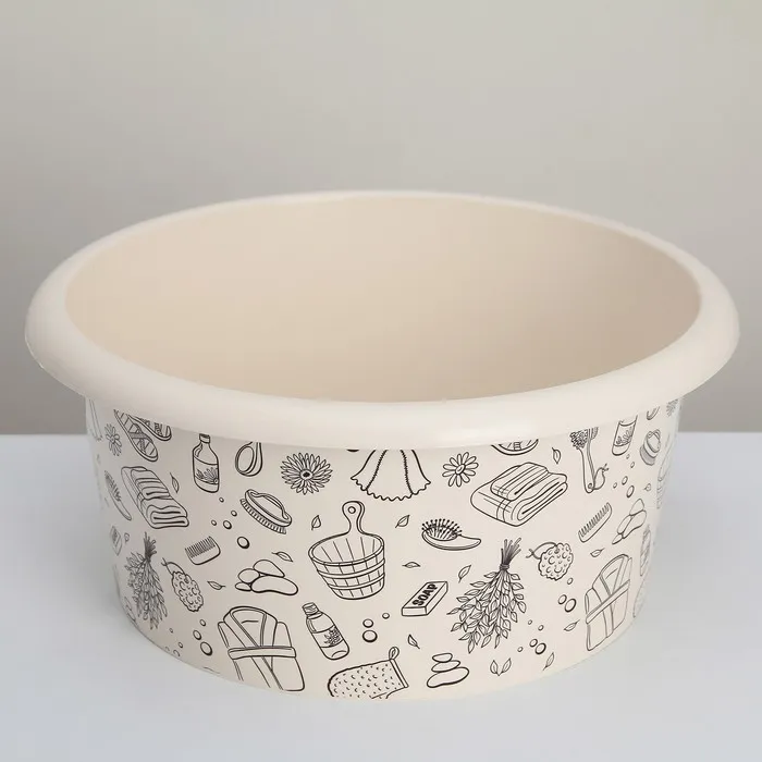 Таз хозяйственный «Русская банька», круглый, пластик, 10 л, бежевый — Характеристики