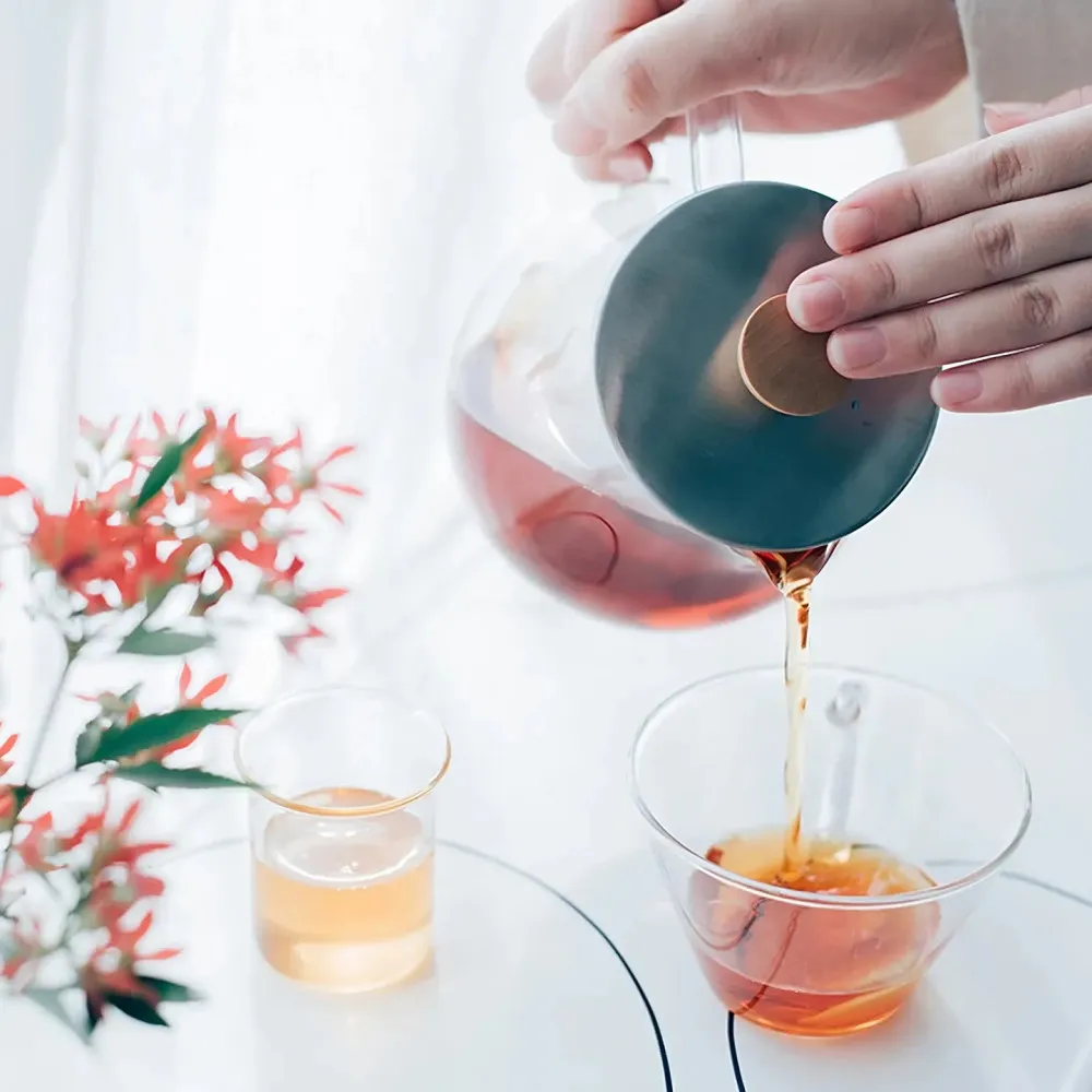 Чайник из термостойкого стекла, нержавеющей стали и натурального дерева. Простой, красивый и удобный в использовании.