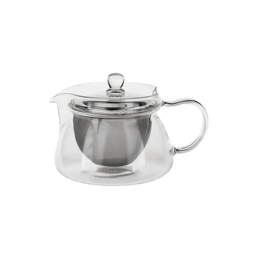 С этим жаропрочным стеклянным чайником вы сможете наслаждаться всеми оттенками вашего чая. В комплекте идет большая ситечка из нержавеющей стали, чтобы чайные листья могли легко расширяться. На крышке чайника есть круглая ручка, что делает его особенно удобным в использовании.