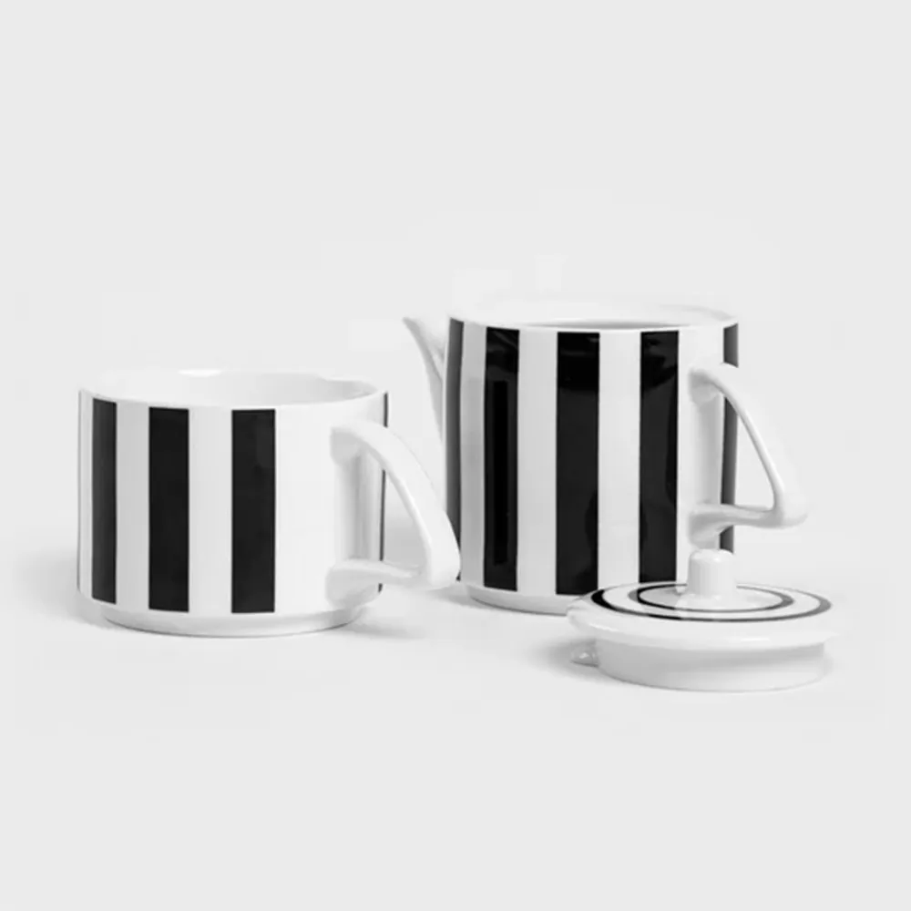 Чайник и чашка "BRETA" предлагают идеальное сочетание элегантности и практичности. Стильные черно-белые полосы и компактные размеры делают этот набор отличным выбором как для повседневного наслаждения, так и для особых моментов.