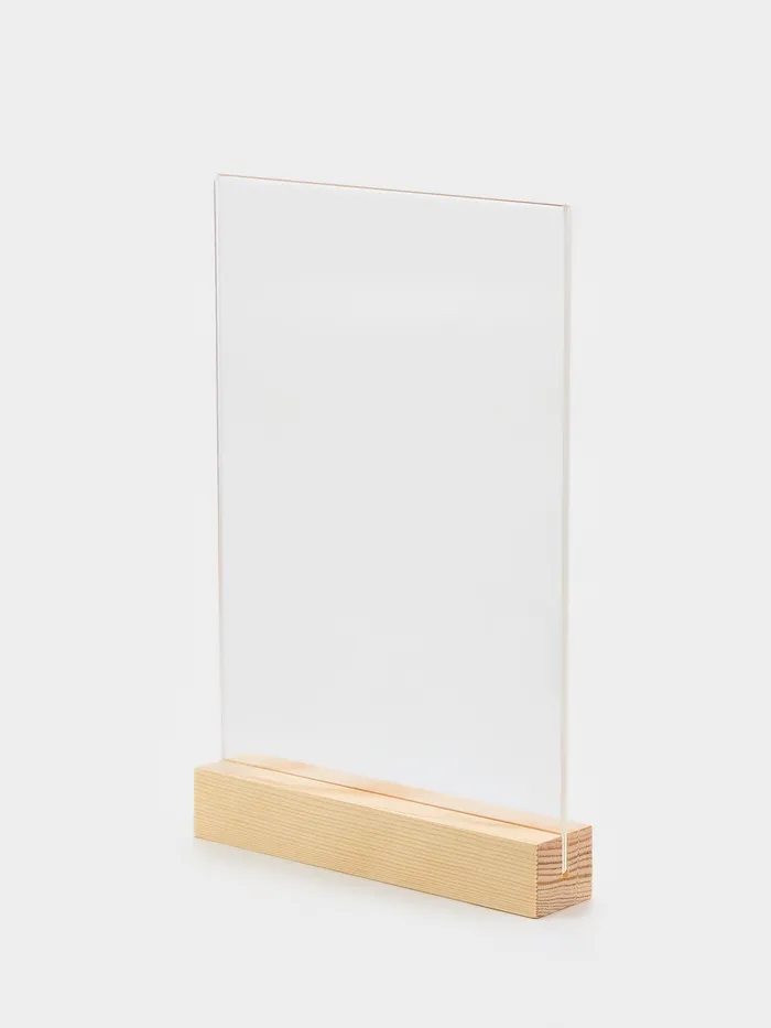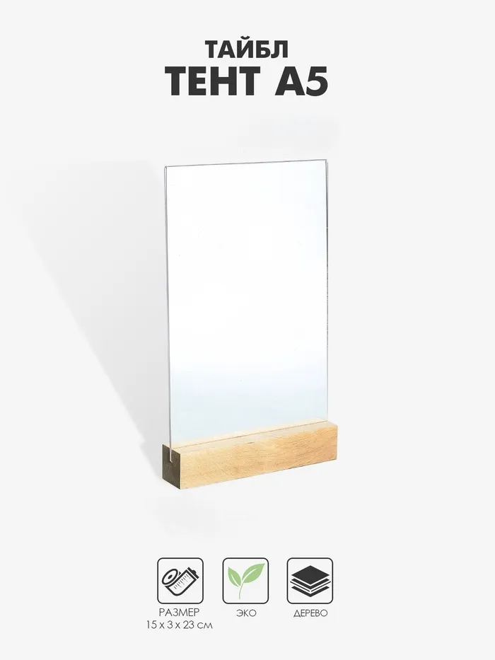 Тейбл-тент на деревянном основании — это идеальный инструмент для демонстрации меню и важной информации в ресторанах, кафе и на мероприятиях. С его помощью вы можете привлекательно представить специальные предложения, акционные товары или тематические мероприятия. Деревянное основание обеспечивает устойчивость и стильный внешний вид, который прекрасно вписывается в любой интерьер. Используйте тейбл-тент для информирования клиентов о новинках и особенностях вашего меню, а также для создания уникальной атмосферы в заведении. Простота замены информации и долговечность конструкции делают этот аксессуар незаменимым для вашего бизнеса.