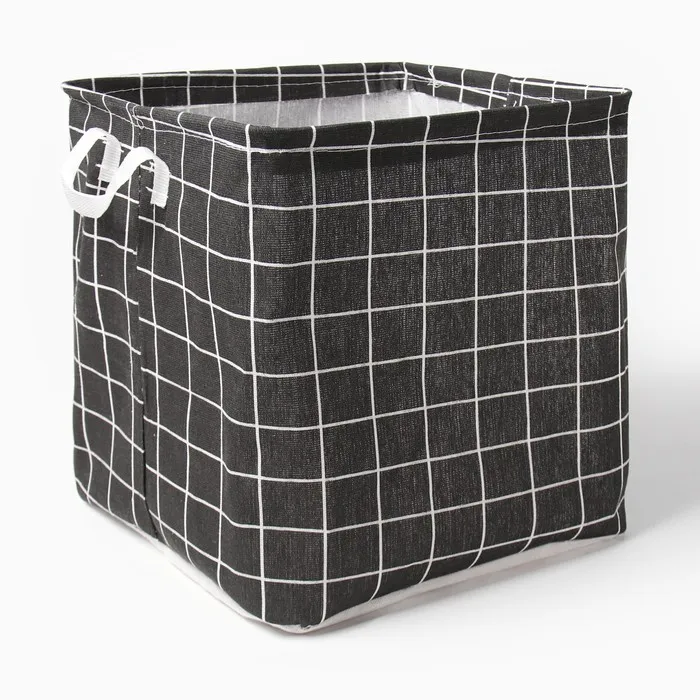 Текстильная корзина Доляна Клетка черная, 32*32*32 см