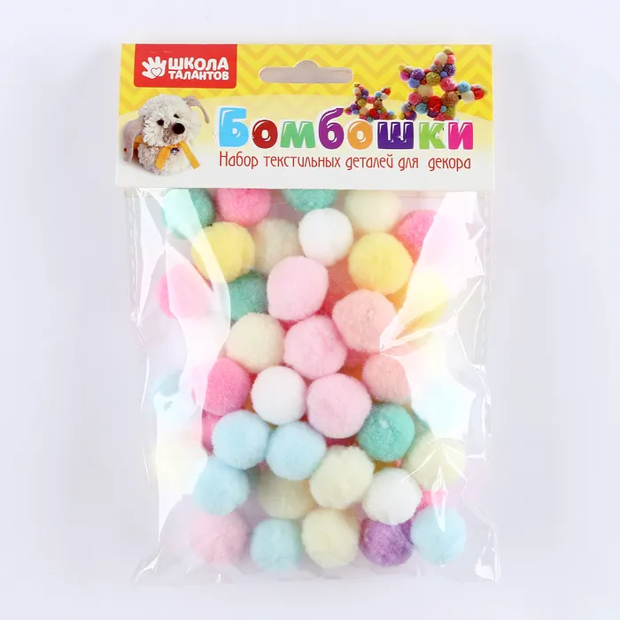 Набор текстильных бомбошек подойдёт для создания детских поделок и аппликаций, декорирования кукол и игрушек.