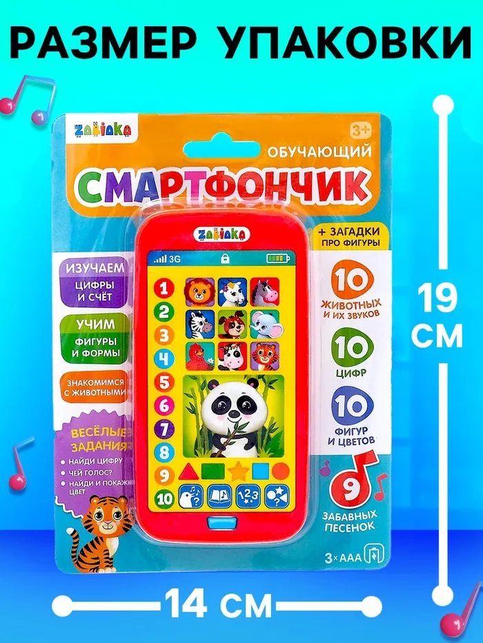 Телефон «Обучающий смартфончик» рекомендован детям старше 3 лет.