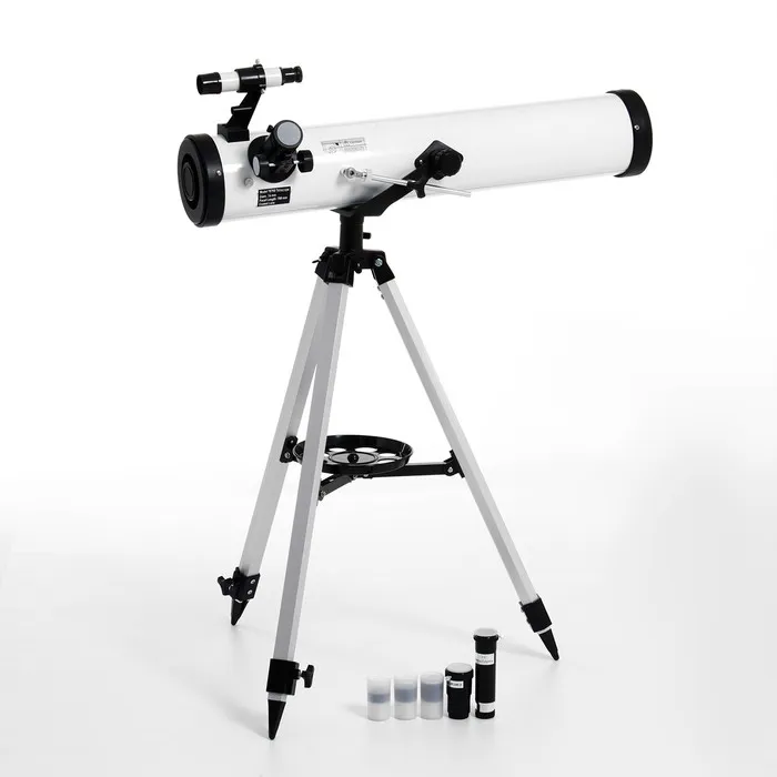 Линзы окуляров изготовлены из стекла и имеют многослойное просветление.Каждый настоящий поклонник астрономии рано или поздно задумается о приобретении своего первого телескопа. Астрономический телескоп 76700 это прекрасный выбор для начинающего астронома. С ним вы сможете рассмотреть Юпитер и его четыре больших галилеевы луны или кольца Сатурна, а также многочисленные лунные кратеры.