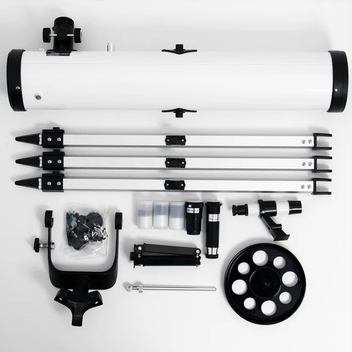 Телескоп имеет устойчивый алюминиевый штатив с возможностью регулировки высоты.